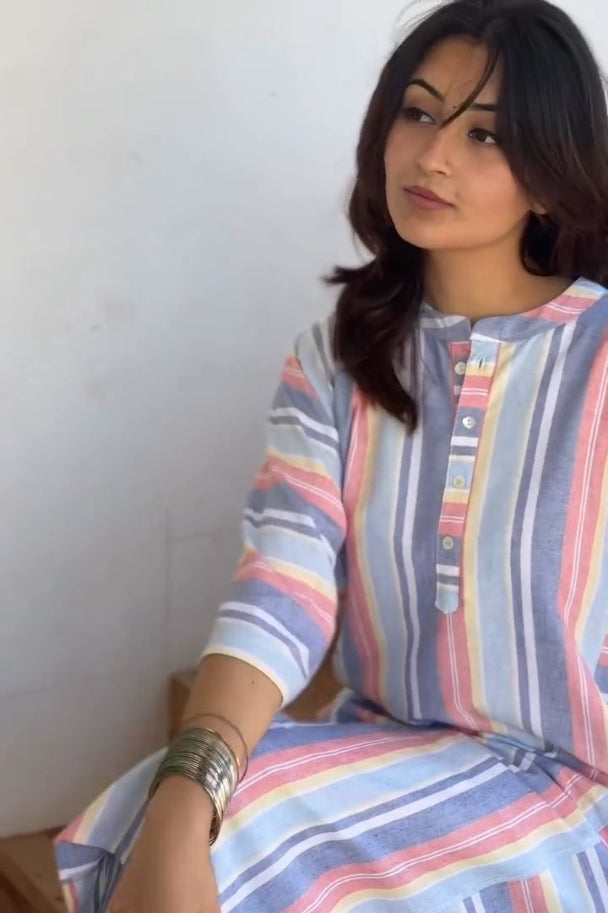 Thoughtfully tailored for the modern woman, this co-ord set is crafted from soft, breathable pure cotton, ensuring all-day comfort no matter the occasion. The set features a graceful A-line Kurti, designed with clean lines and a flattering silhouette that suits every body type. Practical yet stylish, the Kurti includes functional 2-side pockets – adding both ease and utility to your everyday ethnic wear.