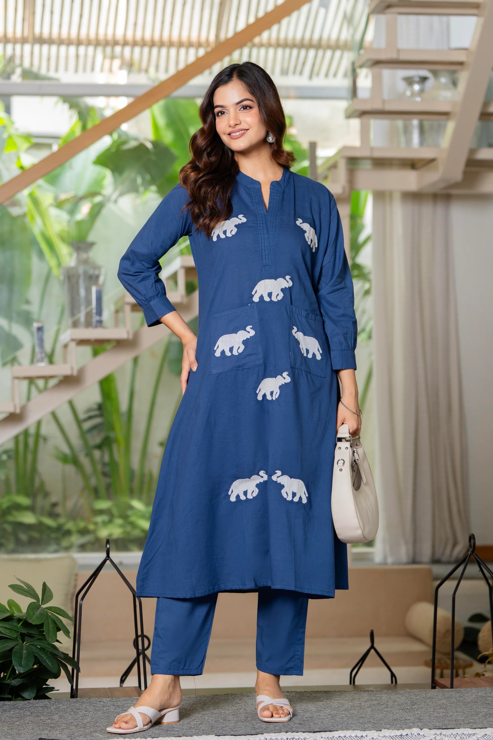 The kurti is made from heavy rayon fabric, known for its soft feel, beautiful drape, and durability. It features exquisite embroidery work that adds a touch of sophistication and charm to the design. The kurti's length is 42+ inches, providing a graceful, flowing silhouette, and the 3/4 sleeves offer a comfortable and stylish fit.